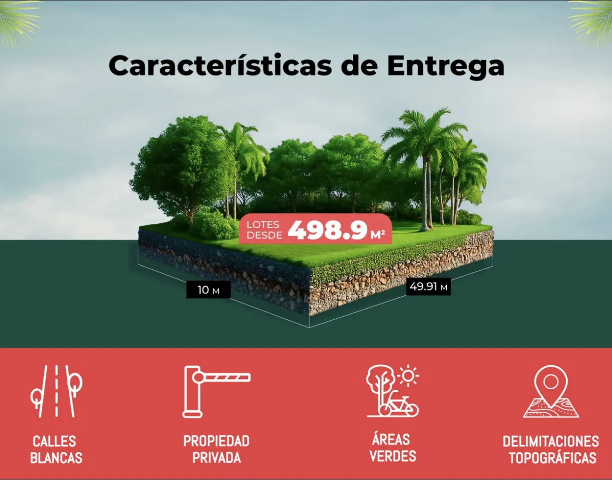 Los lotes van desde aproximadamente 400 hasta 1,600 m², siendo el tipo más común de casi 500 m². Cuentan con uso de suelo mixto, lo que permite desarrollar proyectos residenciales o comerciales. Su ubicación estratégica, rodeada de desarrollos residenciales consolidados, asegura un entorno de crecimiento, alta plusvalía y excelente proyección a corto y mediano plazo.